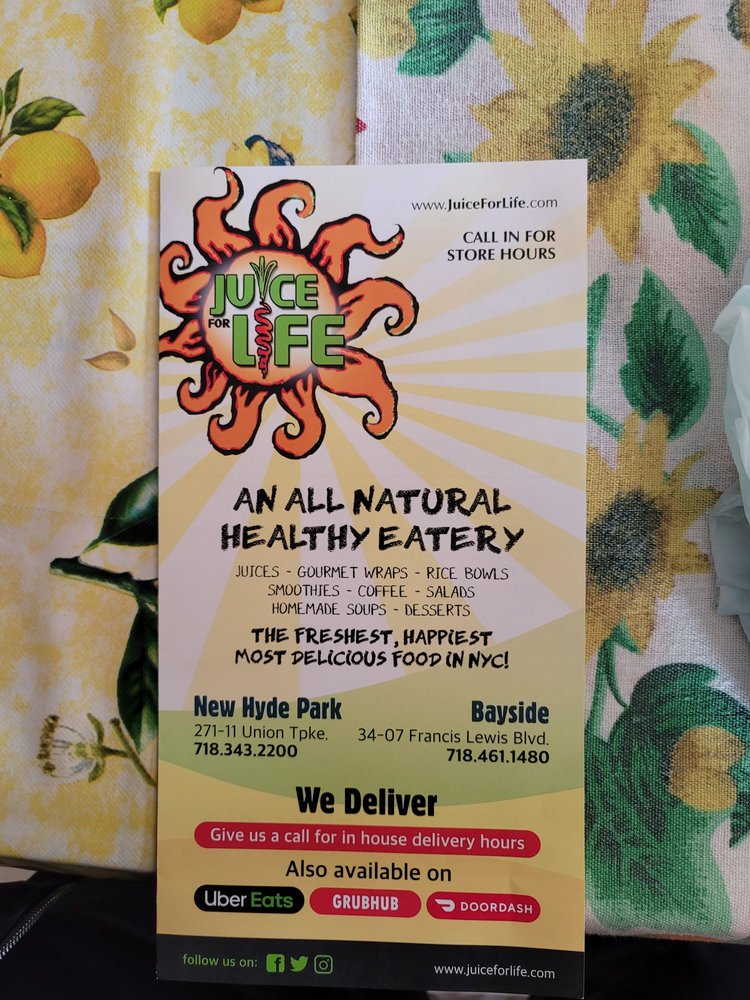 When it comes to Juice For Life, located in Flushing, NY, you can expect a vibrant menu filled with healthy and delicious options. From signature wraps like the Havana, packed with grilled chicken breast, black beans, and brown rice in a spinach wrap, to refreshing smoothies like the Peanut Lover and Tom's brain blast, this place has something for everyone. Customers rave about the quality of the food, friendly staff, and accommodating service. The red apple and lemon juice is a standout, perfectly made to order. With a focus on fresh ingredients and customizable options, Juice For Life is a great choice for those looking for tasty and nutritious meals. Don't miss out on trying their chicken with nutty teriyaki sauce or their muscle head juice - you won't be disappointed.